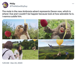 we wanted to bring it out from the back of the cupboard, and place it back in the hearts of the british public. so we told the tale of moley, who embarks on an adventure across the dreamy devon countryside.